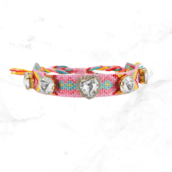 Gevlochten Ibiza armband in verschillende vrolijke kleuren.