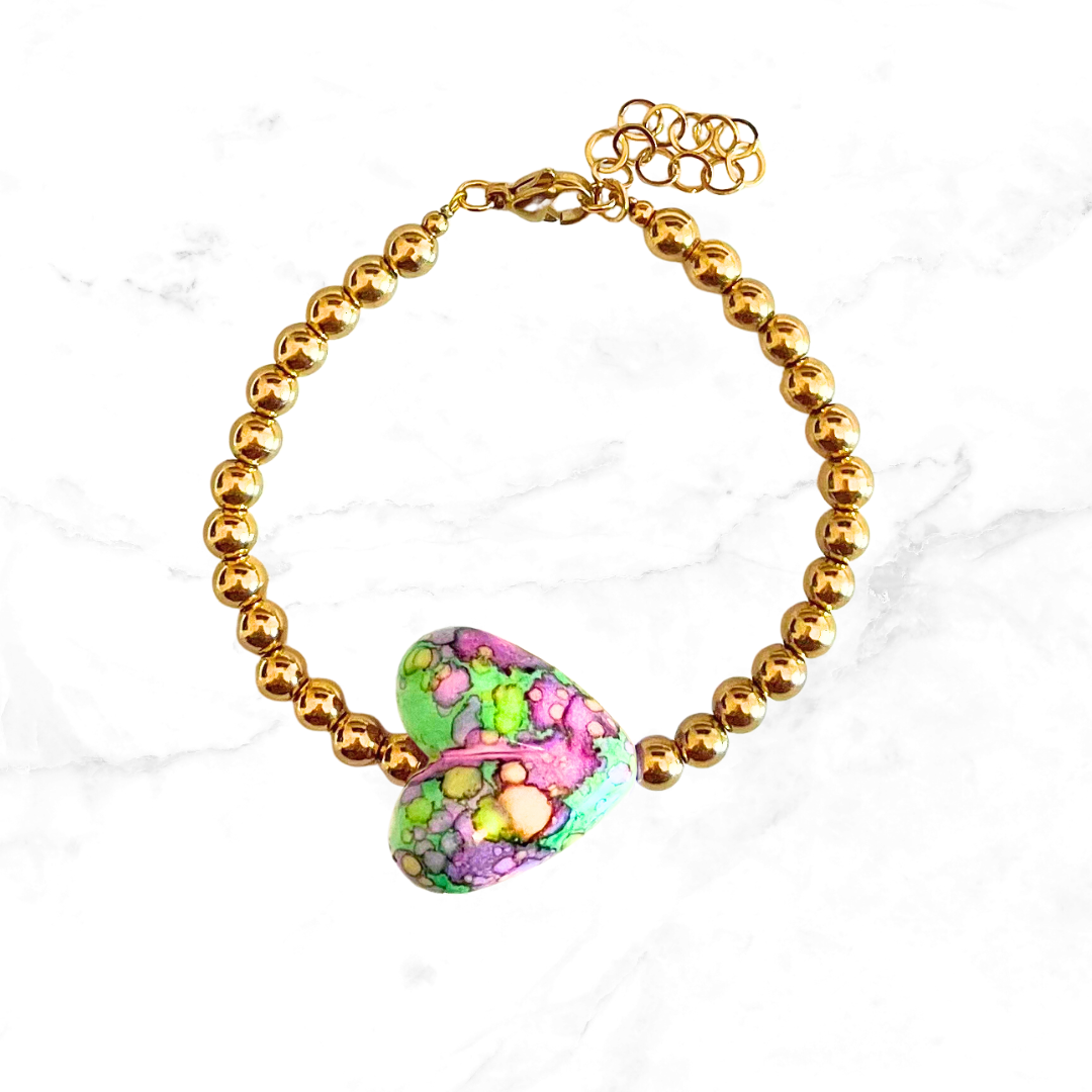RVS armband met groen hart.