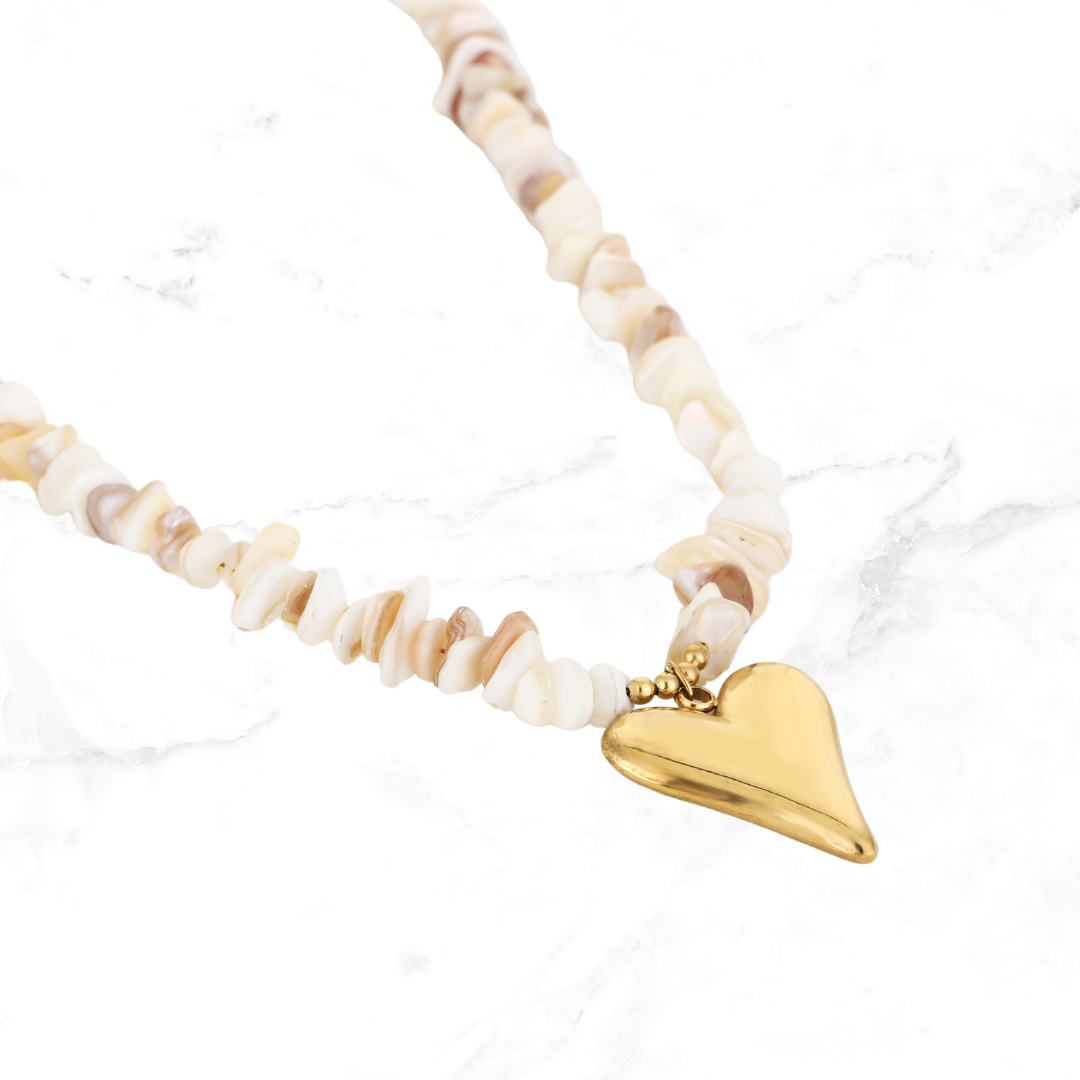 Ibiza ketting met mooie gekleurde schelpkralen en RVS hart bedel. Verkrijgbaar in verschillende kleuren!!