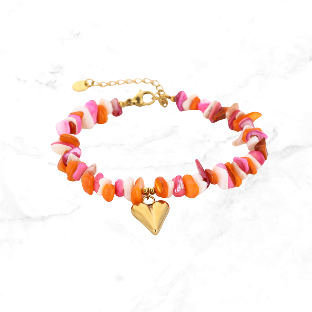 Ibiza Armband Hart - Roze/Oranje/Beige